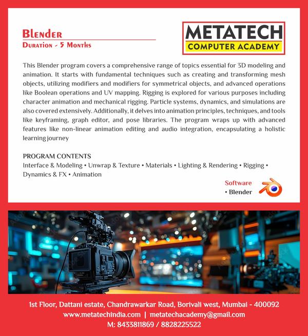 Welcome to Metatech Academy Borivali, India The best institution for grooming future-ready professionals for the rapidly changing digital and creative industries. At Metatech, we believe educ... read more